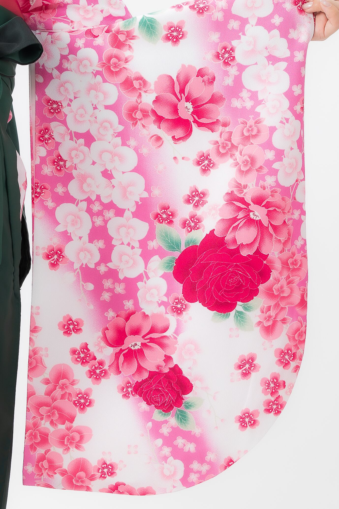 袴:グリーンぼかしカラフル桜刺繍