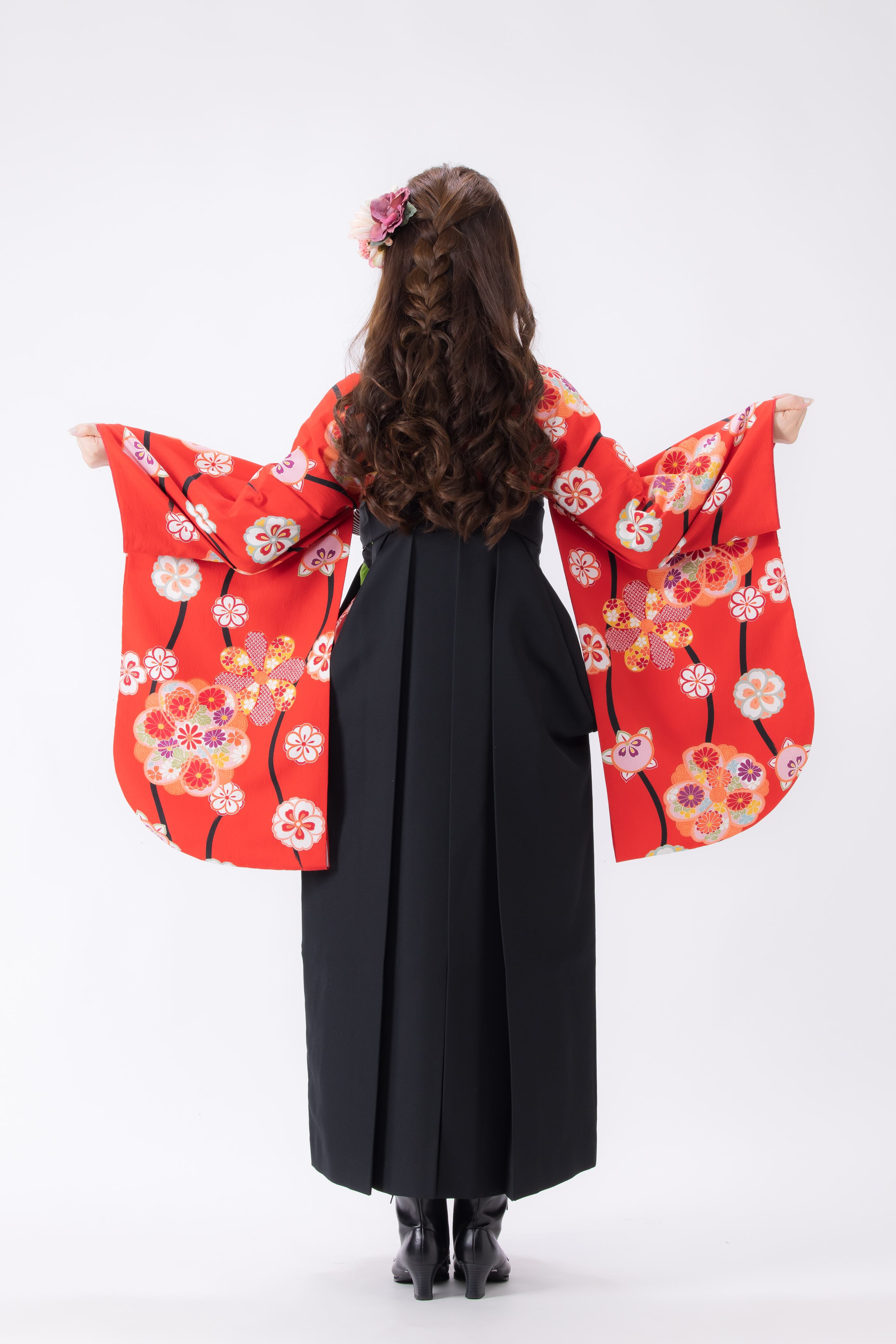 袴:黒に椿とツル(袴価格:13,200円)